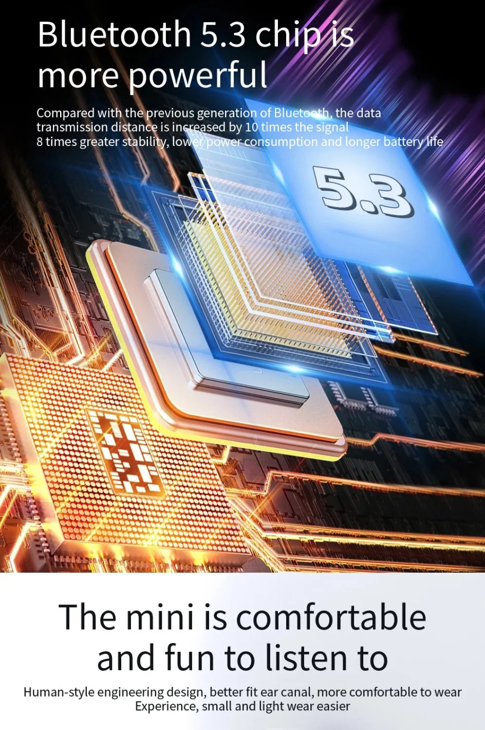 • Bluetooth 5.3:With Bluetooth 5.3, these headphones provide a stable and fast connection to your device.
